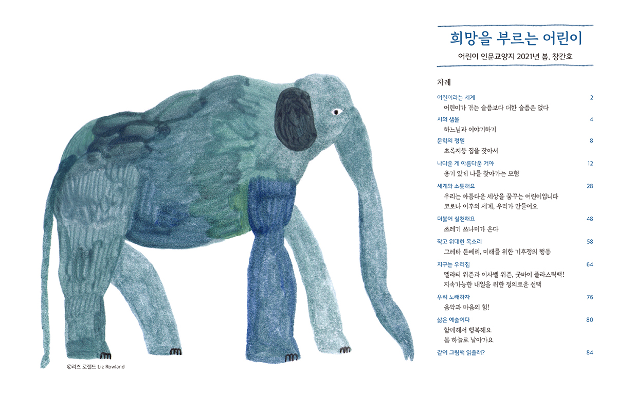 어린 시절에 보고 듣고 겪은 것이 한 인간이 세상을 바라보는 시선을 결정 짓고, 그 시선들이 모여 하나의 세계가 됩니다. 아이들에게 오래되었지만 늘 새로운 가능성을 열어주는 아름답고 선한 이야기들을 들려 주세요. <희망을 부르는 어린이>에는 세계시민으로 성장할 어린이들이 일상에서 행복을 누리고 마음껏 꿈꾸는 세상을 만들어 갈 수 있기를 바라는 마음을 담았습니다. 어린이의 기쁨이 이 세상에 희망을 불러올 것입니다. 따뜻한 햇빛처럼 세상의 모든 어린이에게 이 잡지에 담긴 마음이 가닿기를 바랍니다.