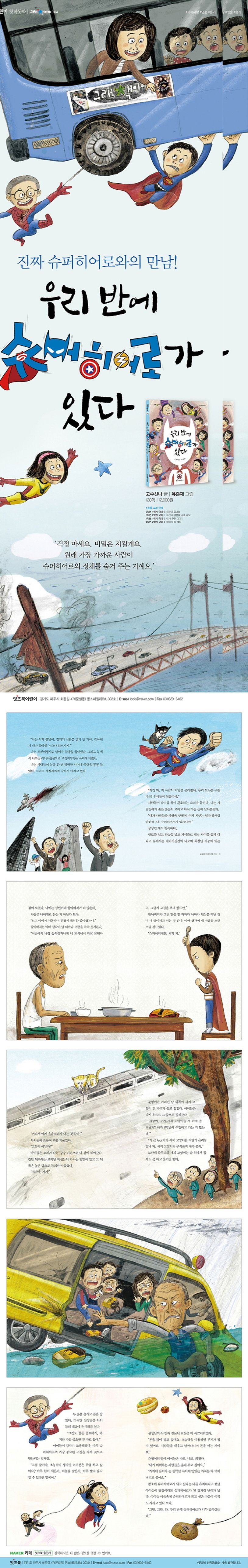할아버지와 둘이 사는 선우는 슈퍼히어로가 꿈입니다. 매일 슈퍼히어로가 되어 못된 악당을 물리치는 꿈을 꾸지요. 만일 슈퍼히어로가 된다면 무거운 돌에 깔려 죽은 아빠도 구할 수 있었을 테니 말입니다. 하지만 반 친구들을 키도 작고 마른 선우를 비웃으며 선우가 제일 무서워하는 곤충을 쫓게 하거나 높은 담벼락에 올라가 고양이를 구해오라고 하지요. 할아버지도 선우에게 잔소리만 할 뿐 선우의 꿈을 응원해주지 않습니다. 담임 선생님만이 선우의 마음을 이해해주지요. 그러던 어느 날 선우도 슈퍼 히어로는 아니지만 멋진 영웅을 만나게 됩니다. 선우가 만난 영웅은 과연 누구일까요? 책을 읽으며 할아버지와 선우의 관계를 통해 서로를 이해하고 함께 마음을 나누는 것의 중요성에 대해 배울 수 있습니다. 또, 슈퍼히어로가 멋있는 이유가 과연 멋진 능력 때문인지 생각해봅시다. 정말 멋있는 것은 눈에 보이지 않기 마련이거든요.