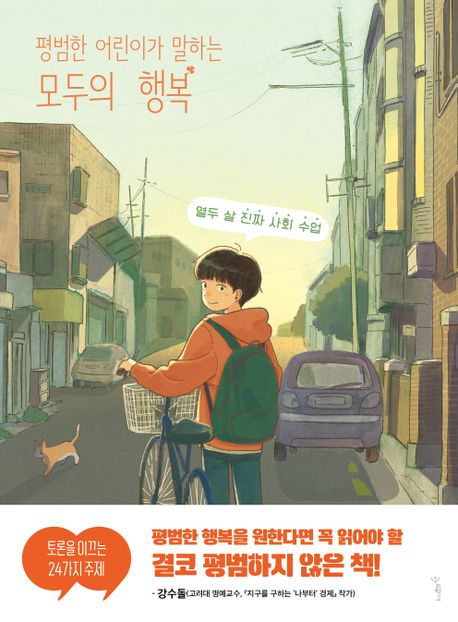 여러분은 행복이 무엇이라고 생각하나요? 행복해지기 위해서는 어떤 것들이 필요할까요? 행복한 순간을 떠올려 본다면 행복은 자기 삶에 만족할 때 느낄 수 있는 감정이라고도 할 수 있을 거예요. 모두가 마주하는 상황이 각각 다르기 때문에 행복이라는 감정을 느끼는 순간도 모두 다를 거예요. 하지만 우리가 늘 당연하다고 생각하는 것을 누리지 못하는 사람들도 세상에는 많이 있어요. 모두가 행복해지기 위해서 우리는 어떤 일을 해보면 좋을까요? 책을 읽으며 같이 생각해 보아요!