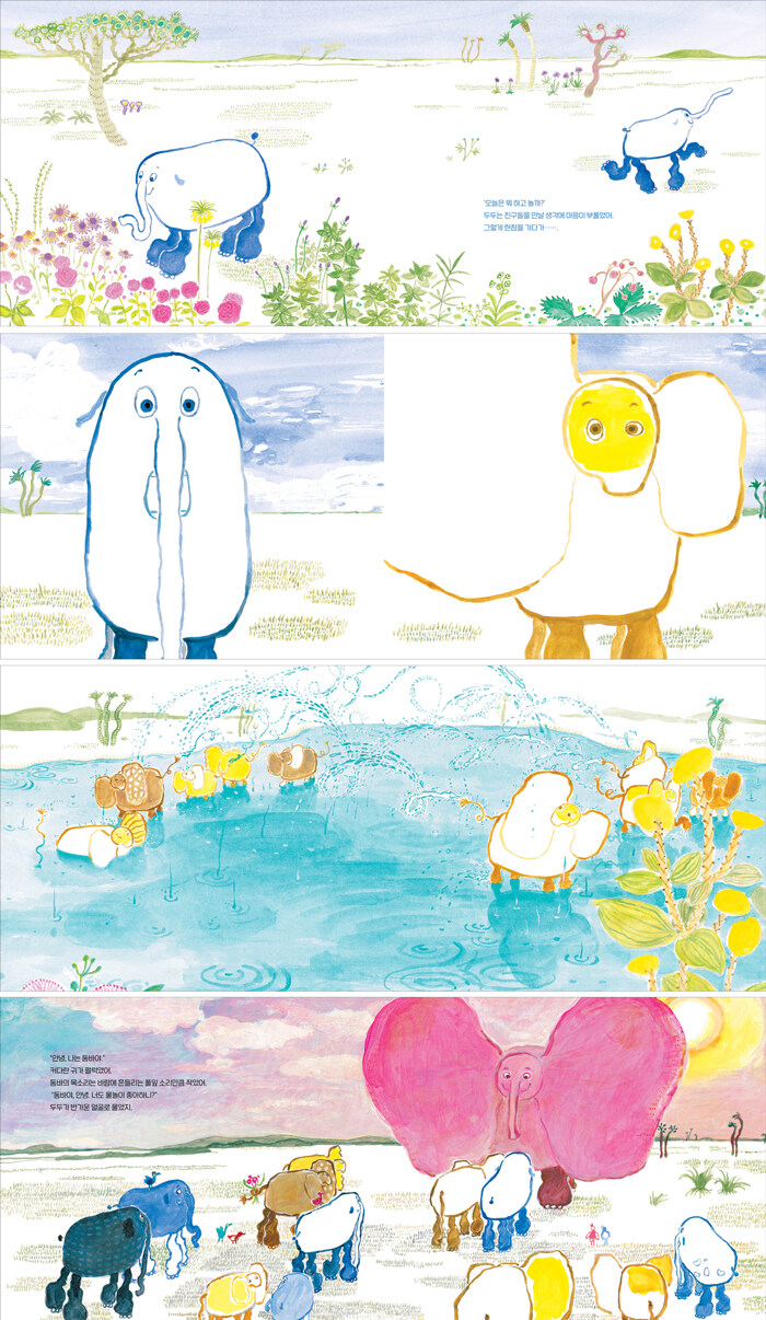 같아 같아 우리는 같아 / 착한 마음 모두가 같아 / 괜찮아 괜찮아 / 그 모습도 너니까 / 그 모습도 바로 / 바로 나니까 「코끼리 이야기」 가사 중에서 (옥희진 작사, 박신애 작곡, (재)군포문화재단 ‘그림책, 음악다방’)