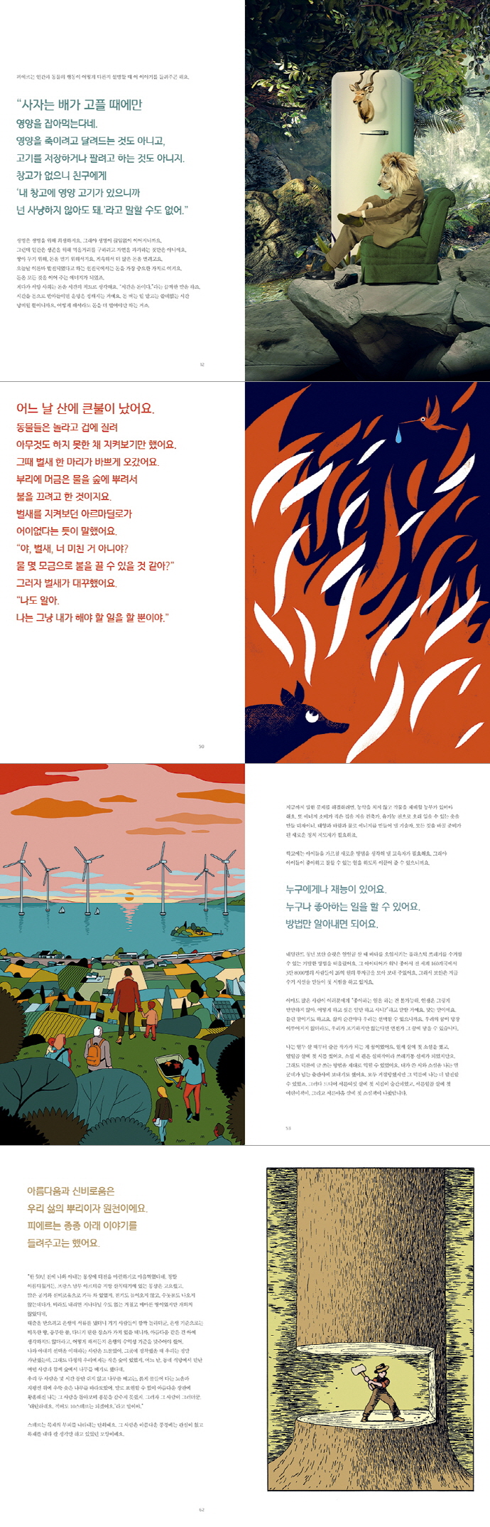 여러분이 꿈꾸는 내일은 어떤 모습인가요? 지금 지구는 기후변화, 쓰레기 문제, 환경파괴, 에너지 문제와 같은 위기에 빠져 있습니다. 이런 거대한 문제들을 우리가 어떻게 해결할 수 있을까요? 이 책에는 우리가 살면서 어떤 가치를 소중히 여길 것인지, 소중한 가치의 실현을 위해 우리가 평소에 어떤 행동을 해야 하는지 알려줍니다. 이 책을 읽으며 나도 내일을 바꾸는 작지만 확실한 행동이 무엇인지 생각하고 실천해봅시다. 이 책은 2016년 세자르 영화제 최우수 다큐멘터리 상 수상작 <내일>에서 못다 한 이야기이자, 생태환경동화『내일-지속가능한 미래를 찾아 떠나는 루와 파블로의 세계 여행』의 실천편입니다. 저자는 인간의 끝없는 욕심이 지구를 망가뜨리는 근본 원인이며, 미래의 주역인 아이들에게 진실을 알려 주어야 한다고 말합니다. 이 책에서 제시하는 실천 방법은 거창하거나 어렵지 않습니다. 책을 읽으며 나는 어떤 실천을 할 수 있을지 고민해봅시다. 또한 검소한 삶이 왜 우리를 오히려 자유롭게 하고, 행복하게 만드는지 생각해봅시다.